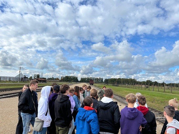 Wycieczka klas ósmych do byłego niemieckiego nazistowskiego obozu koncentracyjnego i zagłady Auschwitz-Birkenau