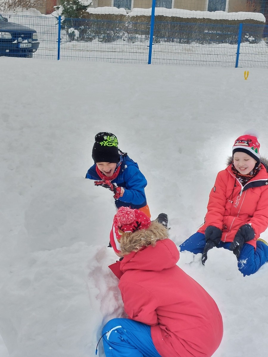 Zimowe zabawy na śniegu uczniów klasy IIIA