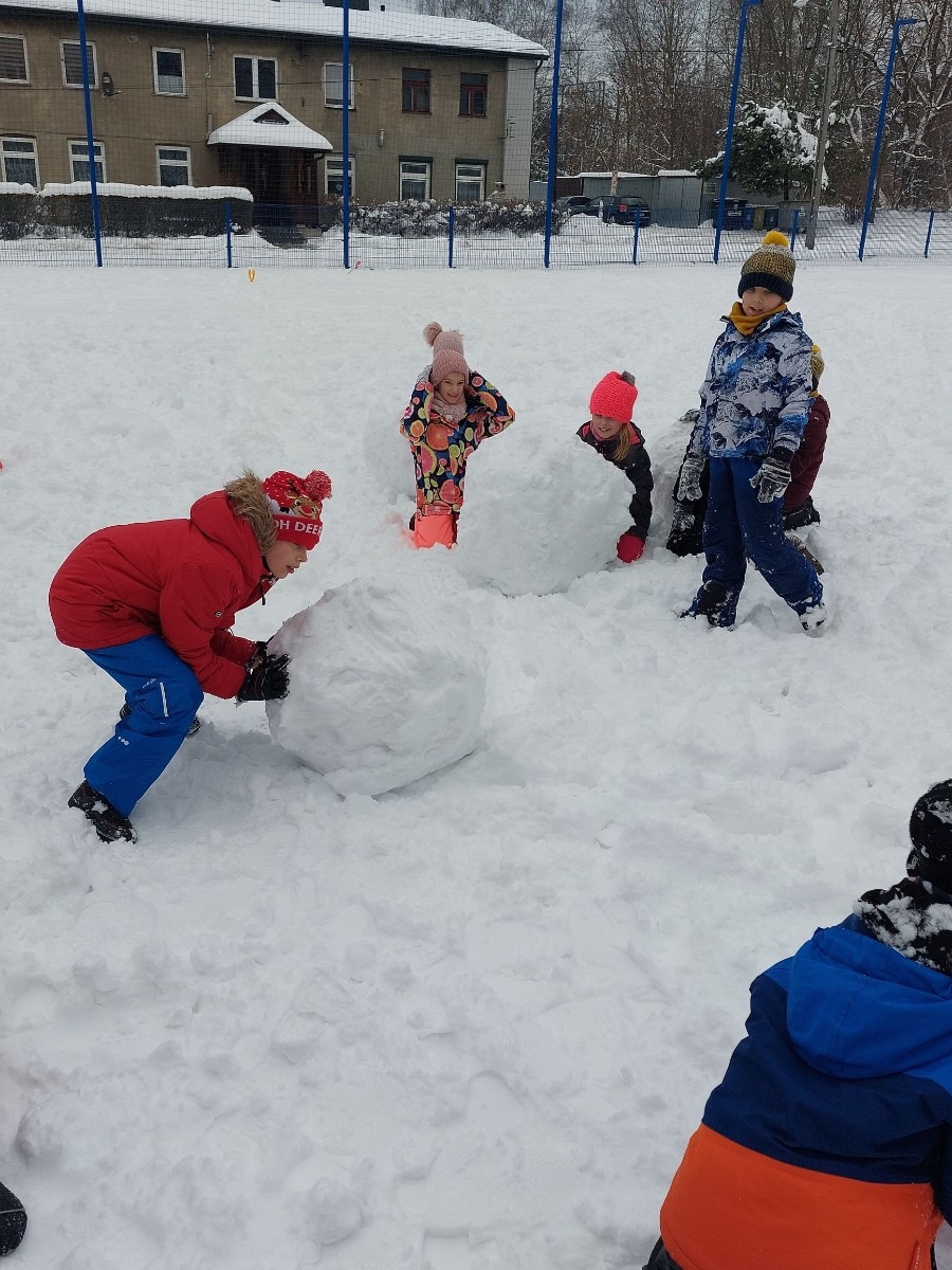 Zimowe zabawy na śniegu uczniów klasy IIIA