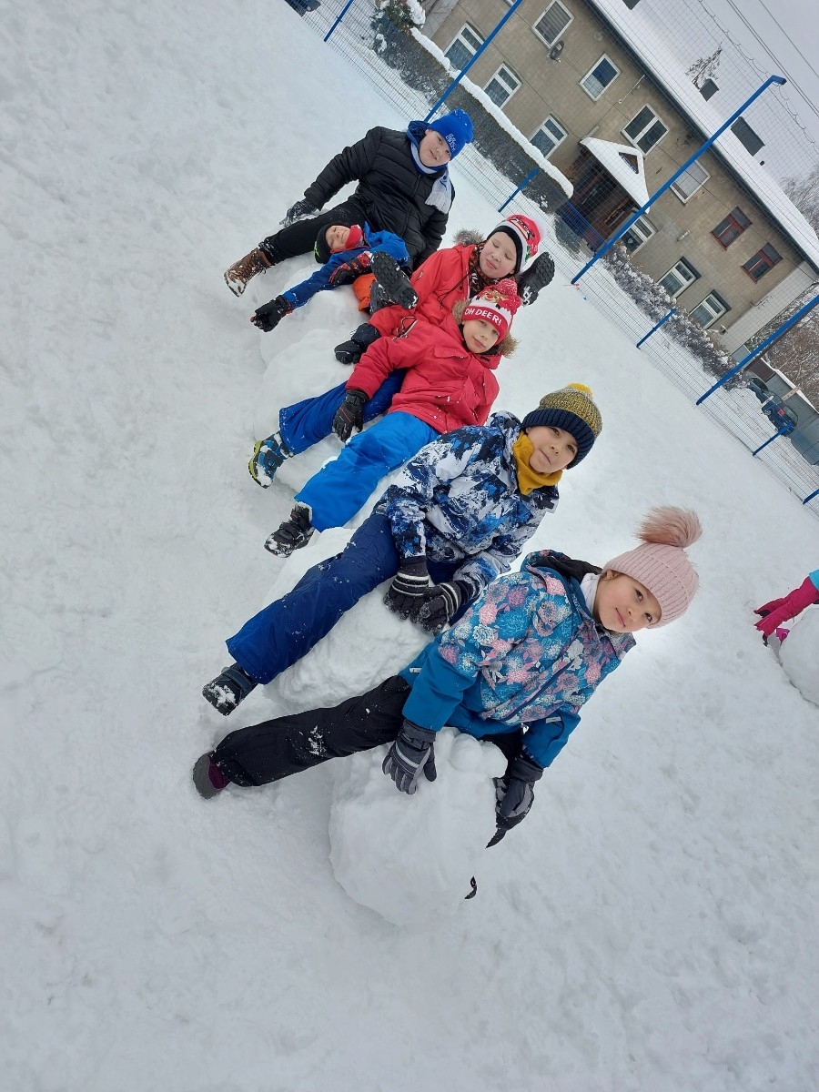 Zimowe zabawy na śniegu uczniów klasy IIIA
