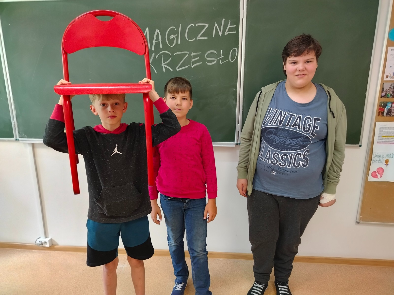 Czerwone krzesło na lekcji języka polskiego