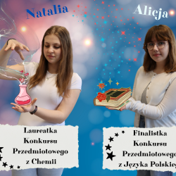 Natalia została laureatką Konkursu Przedmiotowego z Chemii, natomiast Alicja finalistką Konkursu Przedmiotowego z Języka Polskiego
