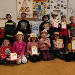 Klasa IA omawiała swoją pierwszą lekturę "Kapelusz Pani Wrony". Uczniowie wysłuchali tytułowego opowiadania i dowiedzieli się, co jest ważne w życiu: bycie dobrym, życzliwym i pomocnym jak Pani Wrona.